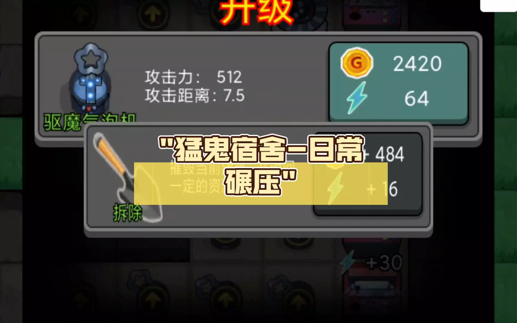 这是手机游戏《猛鬼宿舍》的铜矿开局3分速通内容,展示了普通模式匹配对局的准备、发育、升级铁门等游戏过程,呈现了速通玩法的操作环节。