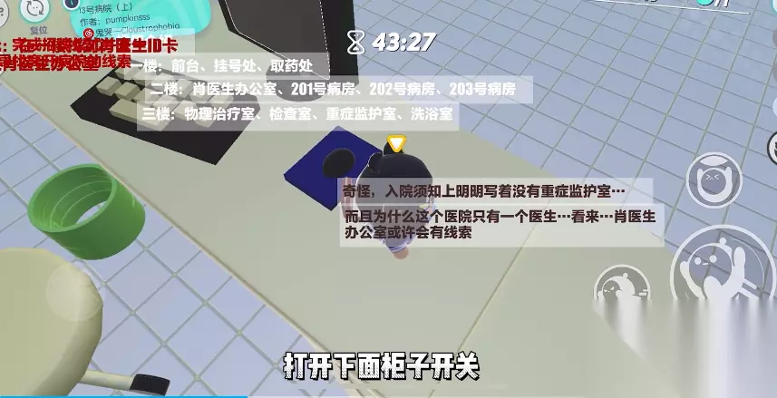 第一阶段:一楼布局·基础道具是关键! 房卡只是起点:成功获取房卡后,千万别松懈!它仅仅是开启病院探索大门的钥匙,真正的挑战才刚刚开始。保持警惕,地毯式搜索每个角落。 纪念品商店的秘藏:仔细探查纪念品商店区域。在这里,你能找到至关重要的3块特殊木头。收集齐全后,立刻在工作台(或背包合成界面)将它们组合成完整的女木偶。这个诡异的人偶,是触发后续核心机关的必备钥匙! 墙面上的数字密码:留意一楼墙面上那些看似随意放置的木质条板。尝试移动它们(通常有特定顺序或触发点),隐藏的密码会随之浮现——743!记住它,找到附近与之匹配的密码锁(通常是通往二楼的楼梯门禁),输入743,解锁通往更深层恐惧的阶梯。
