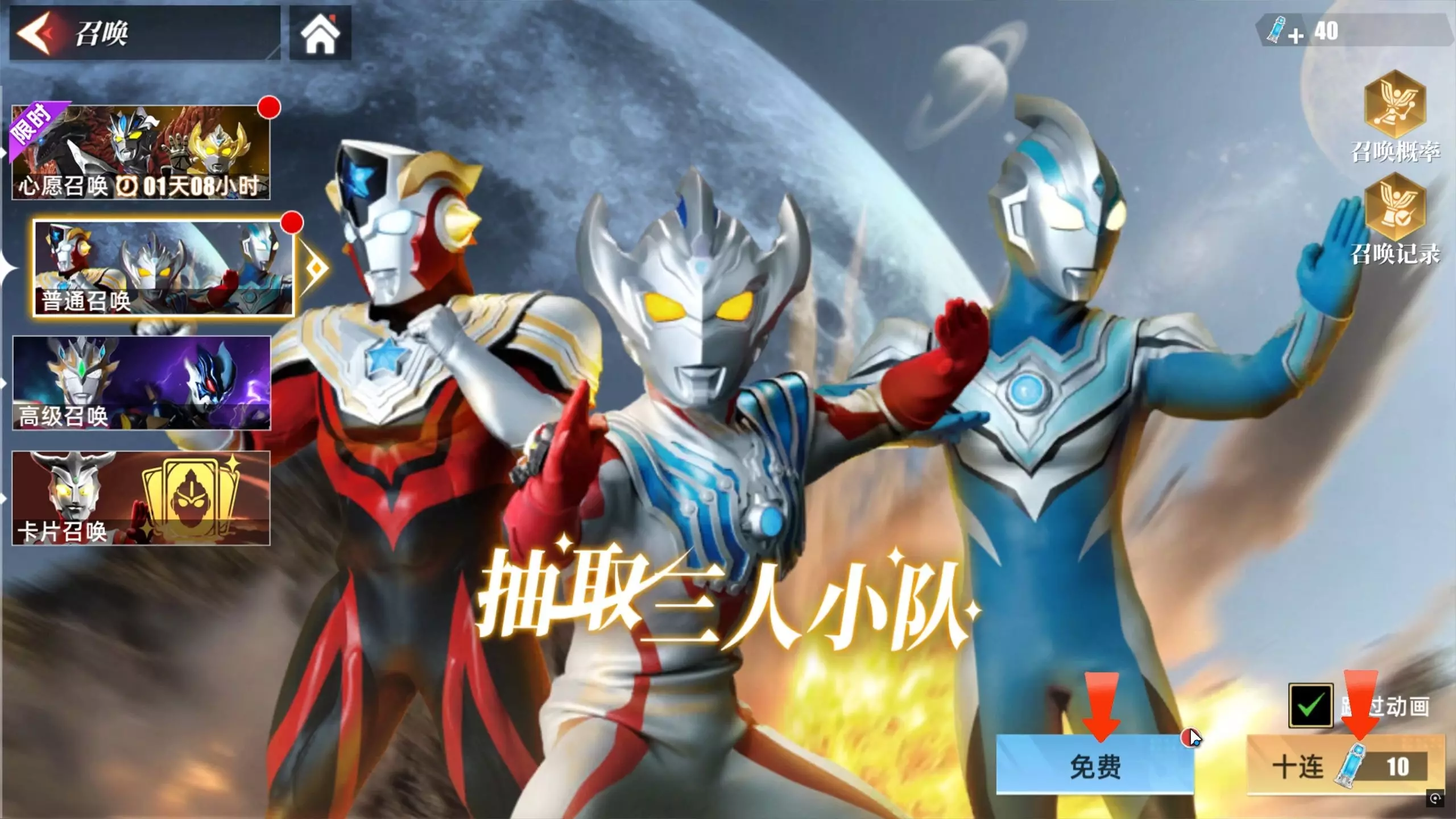 这是奥特曼相关游戏的抽卡内容,作者开小号参与抽卡,在其他玩家多次抽卡仅获“谢谢参与”的情况下,新号成功抽到梦比优斯无限礼包,展示了游戏抽卡的欧皇时刻。