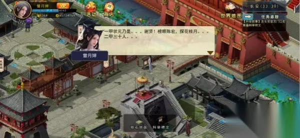 t15_2-t15_1:8.0 标签: 鸠摩智 万众期待的主线终于再次更新了,首先回到东宫找太子,一番言语以后,让你在长安游历,寻找与科举相关之事。一共3件事。 事件①: 刚走到长安中间,就看到落榜书生有情况。和他对话,有一神秘人,非要让书生去国子监。感觉挺厉害的,就去国子监找张庭礼,落榜了还想参加殿试?做梦呢……果然被拒绝了,突然来了一人在他耳边言语两句。这货竟然就改变主意了……刚才那位先生果然有情况。 事件②: 去长安丽春院找唐念君,唐公子在这可不像你们那样,人家是祭奠他的母亲的。只是青楼护卫狗眼看人低,不让唐公子在此祭奠,甚至还大打出手。还好我武功高强,不怕这几个小喽啰。