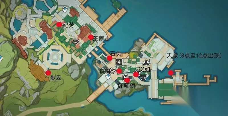 牌手等级3 1、步云可:可获得 【牌手经验×150】【幸运牌币×150】 【幸运牌币x300】X2【支援牌:群玉阁】 2、茶博士刘苏:可获得 【牌手经验×150】【幸运牌币x150】 【幸运牌币x300】X2 【支援牌:刘苏】 3、田铁嘴:可获得 【牌手经验x150】【幸运牌币x150】 【幸运牌币x300】X2【支援牌:田铁嘴】 4、岚姐:可获得 【牌手经验x150】【幸运牌币x150】 【幸运牌币x300】X2【支援牌:凯瑟琳】 牌手等级4 1、纪芳:可获得 【牌手经验×180】【幸运牌币x150】 【幸运牌币x300】【幸运牌币x300】 2、石头:可获得 【牌手经验x180】【幸运牌币x150】 【幸运牌币x300】【幸运牌币x300】 3、卯师傅:可获得 【牌手经验×180】【幸运牌币x150】 【幸运牌币x300】【支援牌:卯师傅】 4、天叔(8点-18点):可获得 【牌手经验×180】 【幸运牌币x150】 【幸运牌币x300】【支援牌:璃月港口】 牌手等级10 田铁嘴:可获得 【幸运牌币x900】X3 三、稻妻地区 位置图