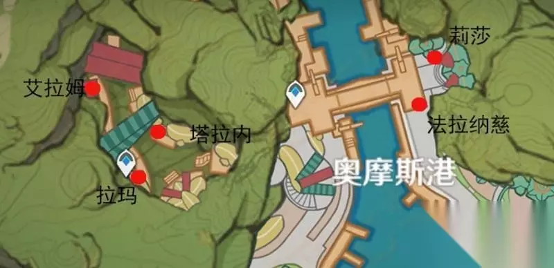 费雷斯特+阿汉格尔+齐米亚+龙努斯+阿斯法德(5位奖励一样) 【牌手经验200】【幸运牌币250】 【幸运牌币500】【幸运牌币500】 牌手等级9(奥摩斯港) 位置图