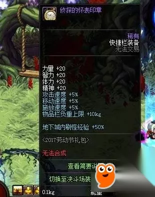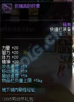 3. 狄瑞吉的纹章 这款纹章应该是第一款加入礼包的纹章,通过购买劳动节礼包即可获得。20四维、5%三速、5kg负重,属性倒也算得上是中规中矩。唯一的亮点就在于30%的经验获取,对于一心升级的玩家来说绝对是刷图的不二神器。