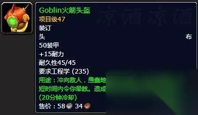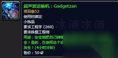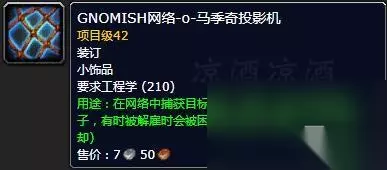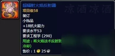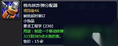 传送物品侏儒是传送塔纳利斯的加基森,地精是传送冬泉谷的永望镇。 其他值得关注的工程产物 饰品火焰反射器,被动加火抗,主动反射火伤害,打熔火之心应该用得到,工程训练师290点学习: