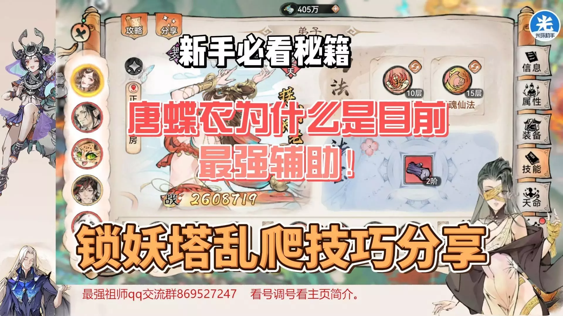 最强辅助唐蝶衣解析及过塔技巧分享!教你如何乱爬锁妖塔!唐的详细攻略视频后续会做出来,大家敬请期待哦。