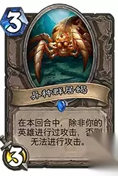 异种群居蝎——前一个版本冠军贼带足两张的好卡,3费超模身材,触发条件简单,最重要的是3攻依旧可以吃掉大部分萨满卡,就算魔像也可以配合匕首解掉。因为没有带阿古斯所以只带一张,这里要简单说明一下为何不带阿古斯,因为叫嚣的削弱所以银色侍从等一大票低费超值仆从无法出场,这间接使阿古斯变得越来越卡手,所以冠军贼的卡组构成也越来越偏中期,从窃贼和蓝龙就能看出来。盗贼不像术士一样有大量低费生物,动物园架阿古斯多为了换仆从,盗贼的仆从大多低血量,阿古斯除了打战士之外并不好用。没有阿古斯群居蝎的价值也跟着下降,所以减为1张。