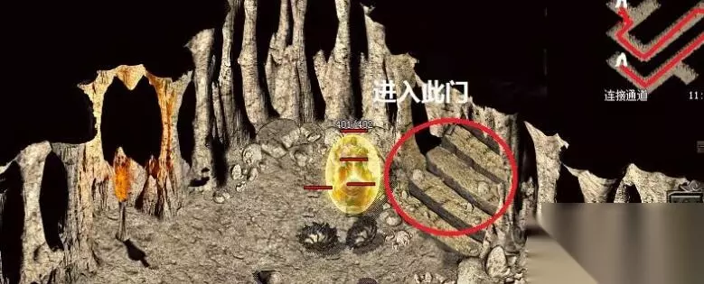 3、向前我们可以看到两个弓箭手,我们走到如图所示的洞穴。