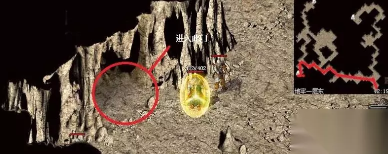 2、然后我们进入地牢第一层的东边也就是蜈蚣洞,大概在坐标12,179附近。