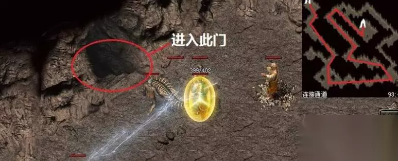 5、在第二个连接通道中我们去往坐标93,46,从这里进入第三个连接通道。