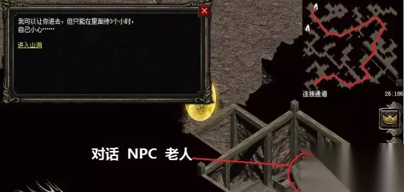 6、我们到达第三个连接通道后去左下角和NPC老人对话进入山洞。