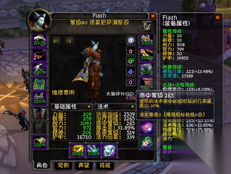 80级元素萨的属性优先级是命中>法强>急速>暴击>智力>其他,元素萨天赋自带3%命中,暗牧和鸟德会在团队提供3%的命中,联盟德莱尼有1%的命中,因此80级联盟的元素萨需要10%命中折合命中等级264及格,部落的元素萨则需要11%命中折合289命中等级才能及格。 在命中堆满之前,其他所有属性都要靠边站。 命中达标之后,优先选择法强,其次是急速,然后是暴击,最后是智力。精神对于元素萨来讲不增加法强,所以是个垃圾属性,因此带精神词条的装备一律不要。 知道了属性优先级之后,配装就好配了,大家根据自身情况搭配即可,每个人经济实力不同,我就不给毕业配装了。 80级元素萨输出手法。 最后简要讲一下80级元素萨的输出手法,武器上火舌,图腾召唤大地之力、天怒、法力之泉和空气之怒。