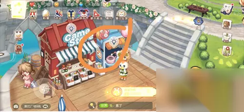 5.七色花位置五:还是去奥比广场,来到刨冰店门口,点击气球获得。