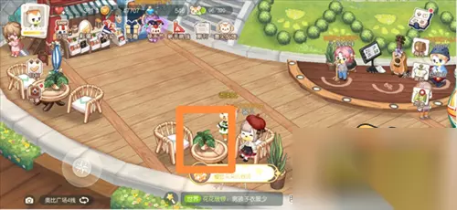 3.七色花位置三:前往奥比广场,找到第二张餐桌,点击绿色盆栽获得。