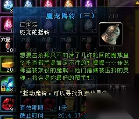 7、打开背包,打开灵宠匣子,得到一个摇铃