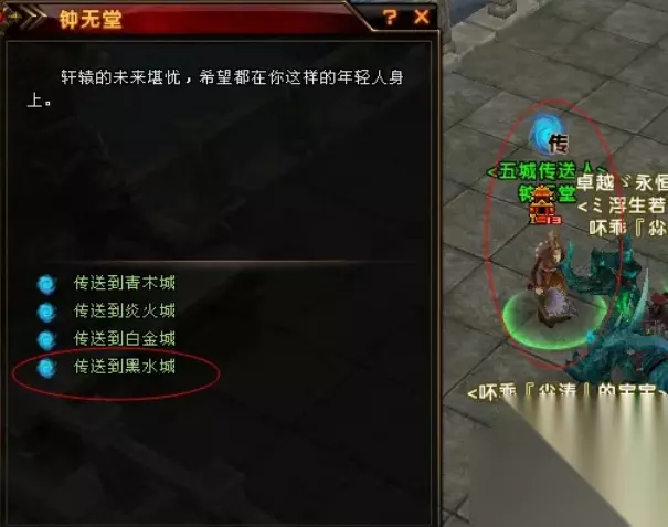 5、今天的在黑水城,则以黑水城为例,点击黑水城,自动寻路到武城传送人