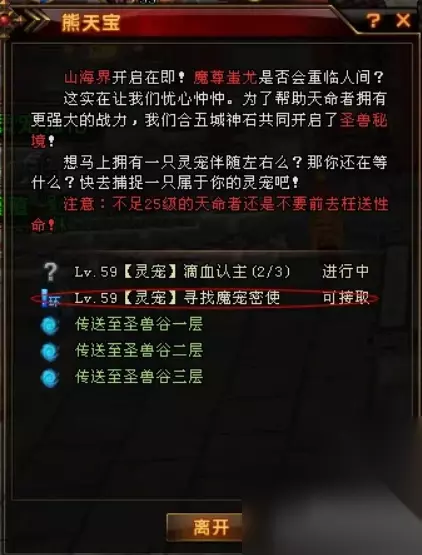 轩辕传奇魔宠摇铃怎么获得 任务步骤: 1、首先登陆游戏,挨个接任务,我说下接任务的流程,先登陆