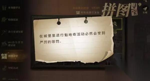 在城堡里进行魁地奇活动必然会受到严厉的惩罚拼图寻宝攻略就介绍到这里了,小伙伴们赶紧去完成任务吧~更多精彩内容可以多多关注233乐园,我们将为你带来更多热门好玩的游戏资讯和攻略内容!