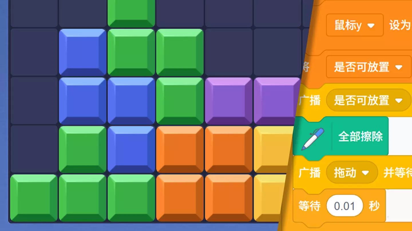这是编程入门内容,教你在Scratch中制作类似《滚动的天空》的游戏,展示了制作时的代码模块,包括准备投影和绘制四边形函数、计算砖块顶点坐标等步骤,带你完成游戏场景绘制。