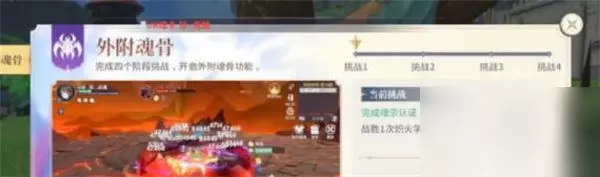 虽然任务在手,但外附魂骨还不能立即使用,因为你需要完成四个挑战。这些挑战的难度都不低,所以大约到50级左右,你才有能力获得外附魂骨。 外附魂骨的强大威力,凡是看过新手前置剧情的人都知道。在那个前置剧情的战斗中,就是外附魂骨带来了逆转战局的特效。 在使用外附魂骨时,会出现一个魂兽出现在魂师背后的效果,这个时刻,魂师的实力提升非常显著。因此,想要解锁外附魂骨,需要花费一定的时间。 在第一个挑战中,你可以通过动画观察到外附魂骨的强大。实际上,每个挑战的第一个小任务都不难,最困难的是第二个小任务。 例如,挑战1要求玩家必须战胜一次炽火学院。这个副本的难度非常大,差不多要到50级才能打得过,而且还取决于队伍的组合。所以,如果你想要解锁外附魂骨,可能需要尽快升级才有可能成功解锁。