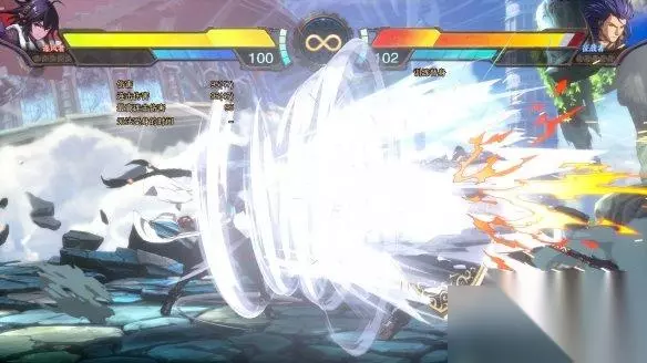 风暴之眼,对手拉向自己后利用风爆发的力量将对手吹飞。