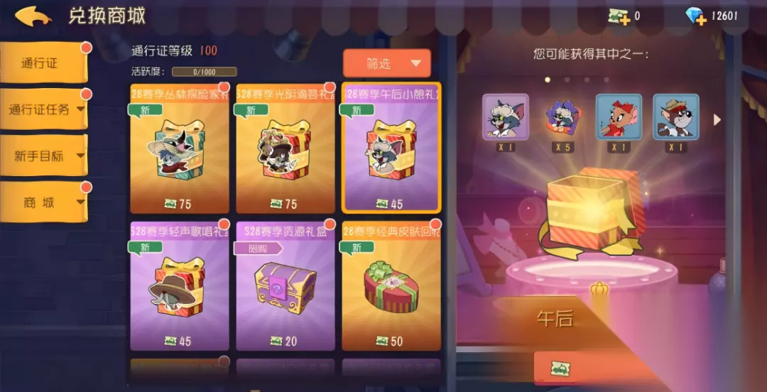 扫货币能在兑换商城内兑换价值很高的商品,比如大家最喜欢的知识点礼盒,当然,S28赛季中,兑换商城会新增很多能够兑换的商品,让我们一起来看看吧! 超值礼盒分别如下: S28赛季宫廷神官礼盒:仅限S28赛季通行证兑换商城获取。开启后有一定几率获得宫廷神官皮肤,每累计开启10个礼盒,必定可以获得宫廷神官皮肤碎片×10; S28赛季光阴滴答礼盒:开启后有一定几率获得光阴滴答皮肤,每累计开启10个礼盒,必定可以获得光阴滴答皮肤碎片×10; S28赛季丛林探险家礼盒:开启后有一定几率获得丛林探险家皮肤,每累计开启10个礼盒,必定可以获得丛林探险家皮肤碎片×10; S28赛季轻声歌唱礼盒:开启后有一定几率获得轻声歌唱皮肤,每累计开启10个礼盒,必定可以获得轻声歌唱皮肤碎片×5; S28赛季午后小憩礼盒:开启后有一定几率获得午后小憩皮肤,每累计开启10个礼盒,必定可以获得午后小憩皮肤碎片×5; S28赛季经典皮肤回忆礼盒:仅限S28赛季通行证兑换商城获取。开启后有一定几率获得经典A级皮肤完美少女、休闲小伙、缤纷画师,累计开启30个礼盒必定获得其中之一,已获得的皮肤不会重复获取; MVP天使杰瑞礼物礼盒:仅限S28赛季通行证兑换商城获取。开启后可随机获得MVP天使杰瑞、天使翅膀、古卷书籍、爆米花其中之一; S28赛季资源礼盒:S28赛季限定礼盒,开启后可以随机获得星星、邮票、知识点、金币等丰富奖励;