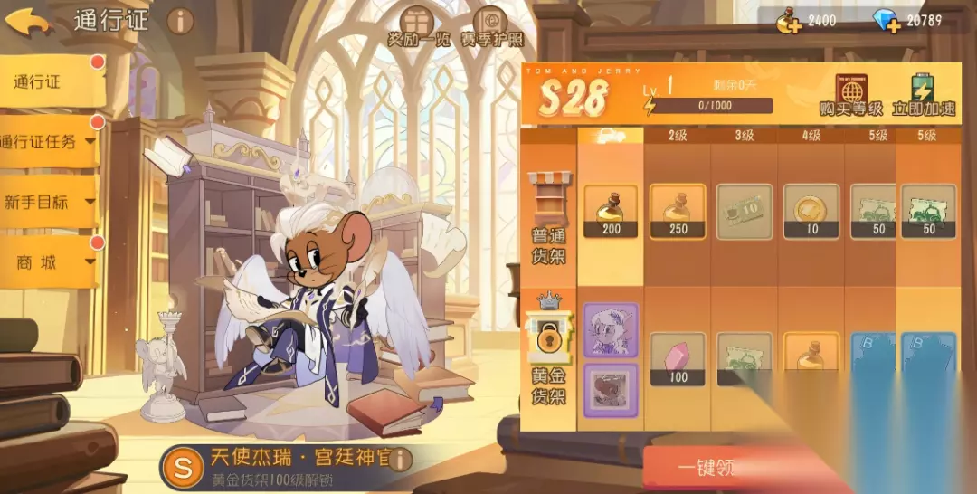 60级获得S28赛季自选A级知识卡 80级获得S28赛季自选S级知识卡 90级获得知识祝福卡 100级获得S级皮肤“天使杰瑞·宫廷神官”