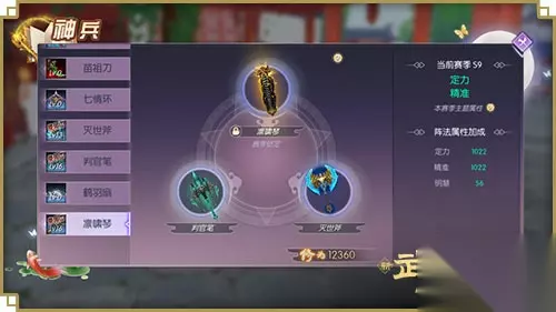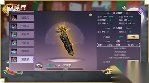 图二 S9赛季燃情开赛,神兵凛啸琴出现在了众少侠的神兵列表中,通过消耗兵魂值对其进行淬炼升级,可提高基础属性,获得对抗活动中专属的战斗属性,增强战斗力与PVP的硬实力!