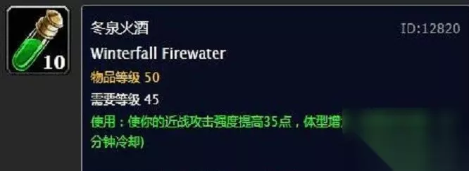 魔兽世界怀旧服冬泉火酒怎么获取-在哪得 1、玩家家可以前往卡利姆多->往北部一直走->冬泉谷,击杀冬泉谷的熊即有概率掉落获得。 2、坐标冬泉谷(76,26),一只叫「冬泉酋长」的任务怪,击杀后100%掉一瓶。