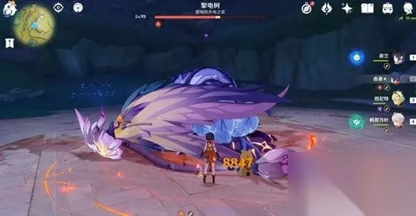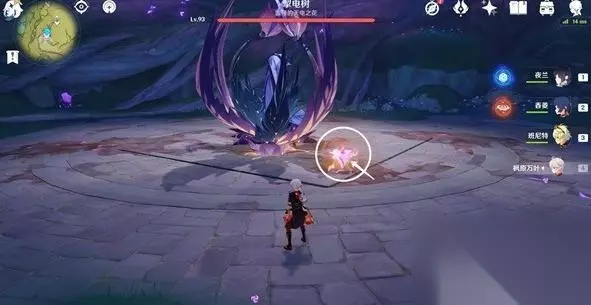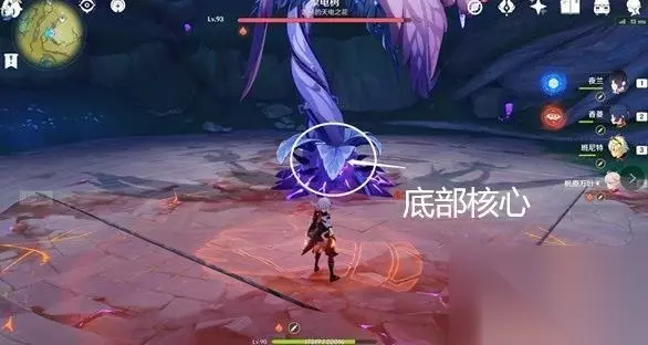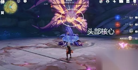 2.击碎花蕊后,需要攻击头部和底部的雷元素核心。同样切换香菱使用火元素攻击即可。