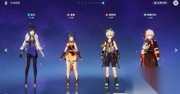 二、推荐配队 队伍中只要有两个火元素角色即可,比较推荐夜兰 香菱 班尼特 枫原万叶。