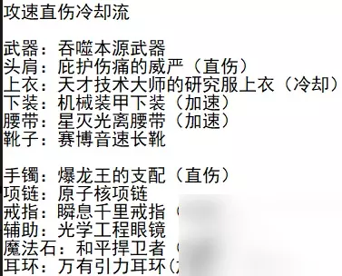 接下来说说装备搭配,使用的是攻速直伤冷却流,