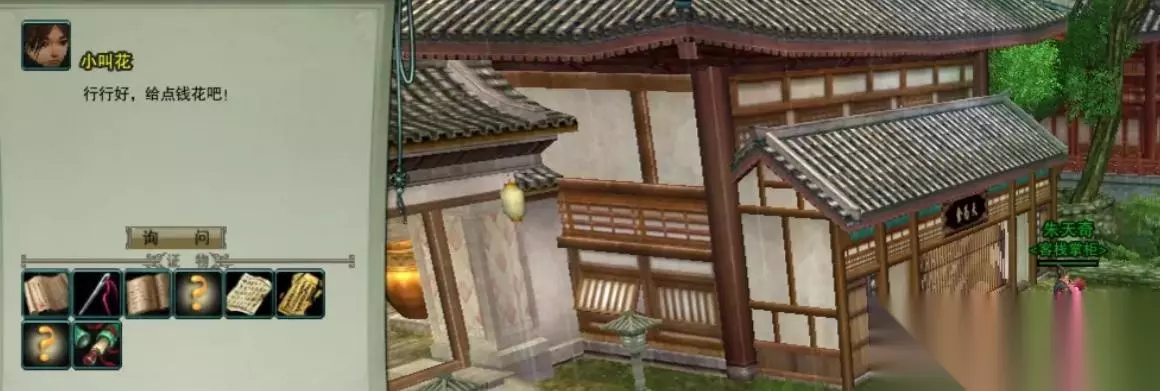 4、去林白轩的小房子里取得证物画卷,画卷位置如图所示 5、林白轩的小房子位置如下图 6、找NPC小叫花取得证词。根据小叫花的证词,那个人是左撇子。