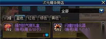 二、周常地下城 每周二和周六,可以通过赛丽亚旅馆中的NPC阿比斯进入怪虫栖息地,通关该地下城可以获得3个蓝色次元精华(无法交易),但是在阿比斯的商店中6个蓝色次元精华可以购买强烈的气息礼盒(账号绑定)。所以推荐大家账号内的角色都打一打这个图,这样每周都可以换到10个礼盒,每个礼盒可以开出20个强烈的气息,也就是每周200个。