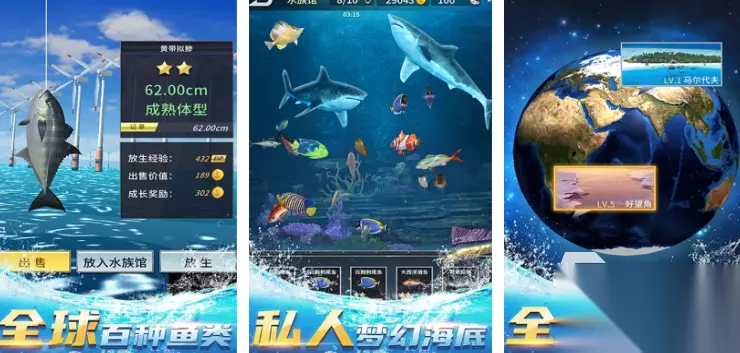 这款手游为玩家们提供了多样化的抓鱼场景,从热带的雨林中,到深海里的怪诞鱼类、再到赤道上的异域风情。让玩家们尽享捕鱼乐趣。游戏里玩法也非常的休闲。只需要一根手指控制鱼竿的方向与力度,一个键位控制起竿收杆就可以完成了。游戏里还有全世界上百种珍惜鱼类的图鉴,等着大家收集完全呢! 高速下载 普通下载 优先233乐园APP下载 5、《一起来抓鱼》