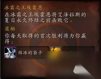 每天只有之一次会获得奖励的小袋子,冰霜之王好像也只有每天之一次被击杀有掉落: