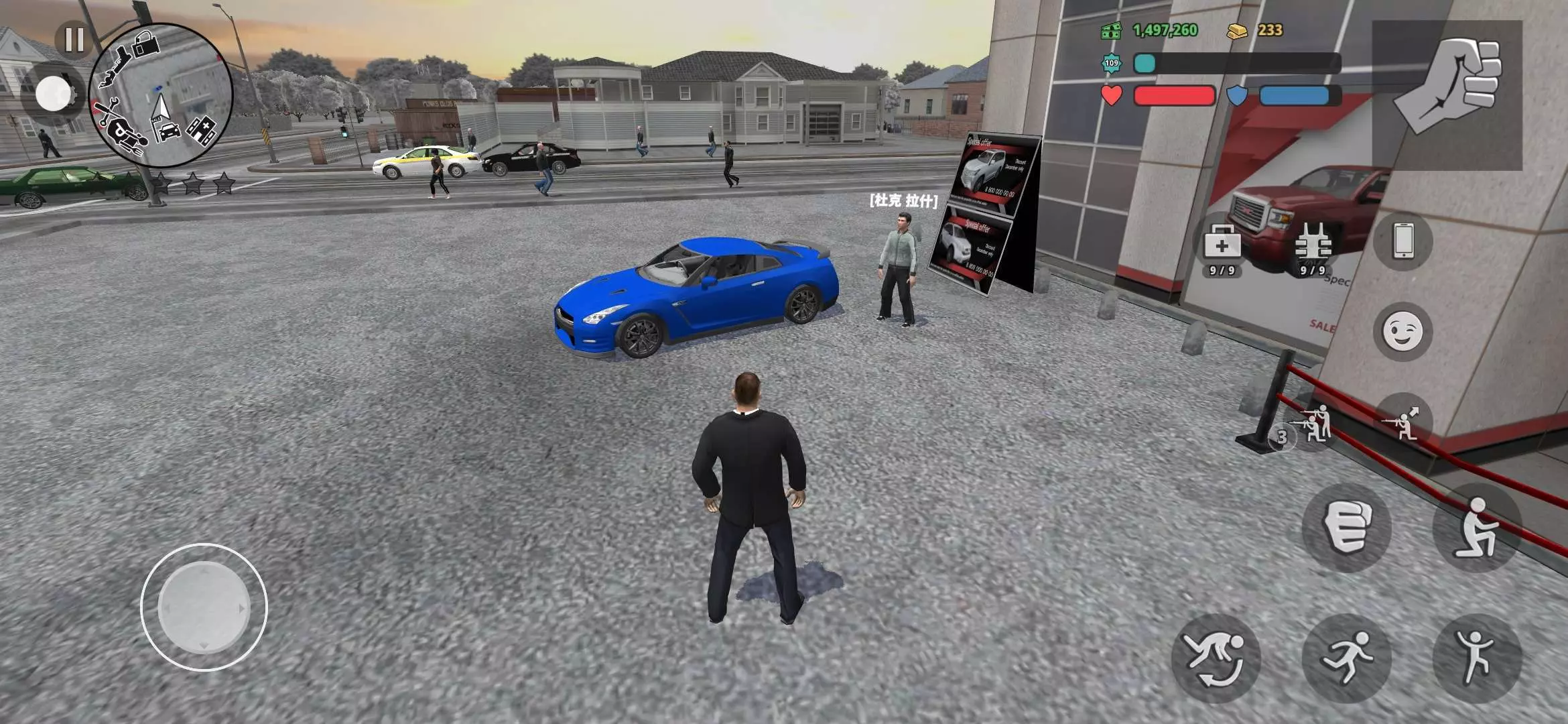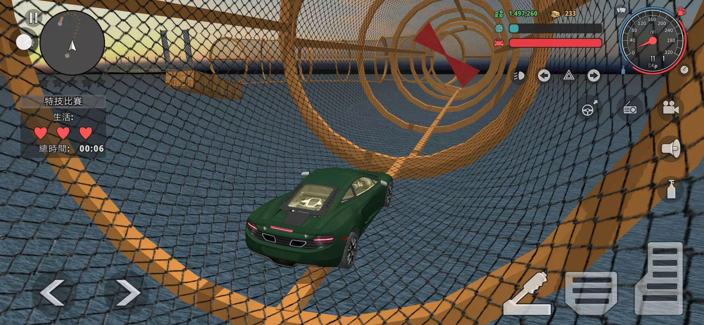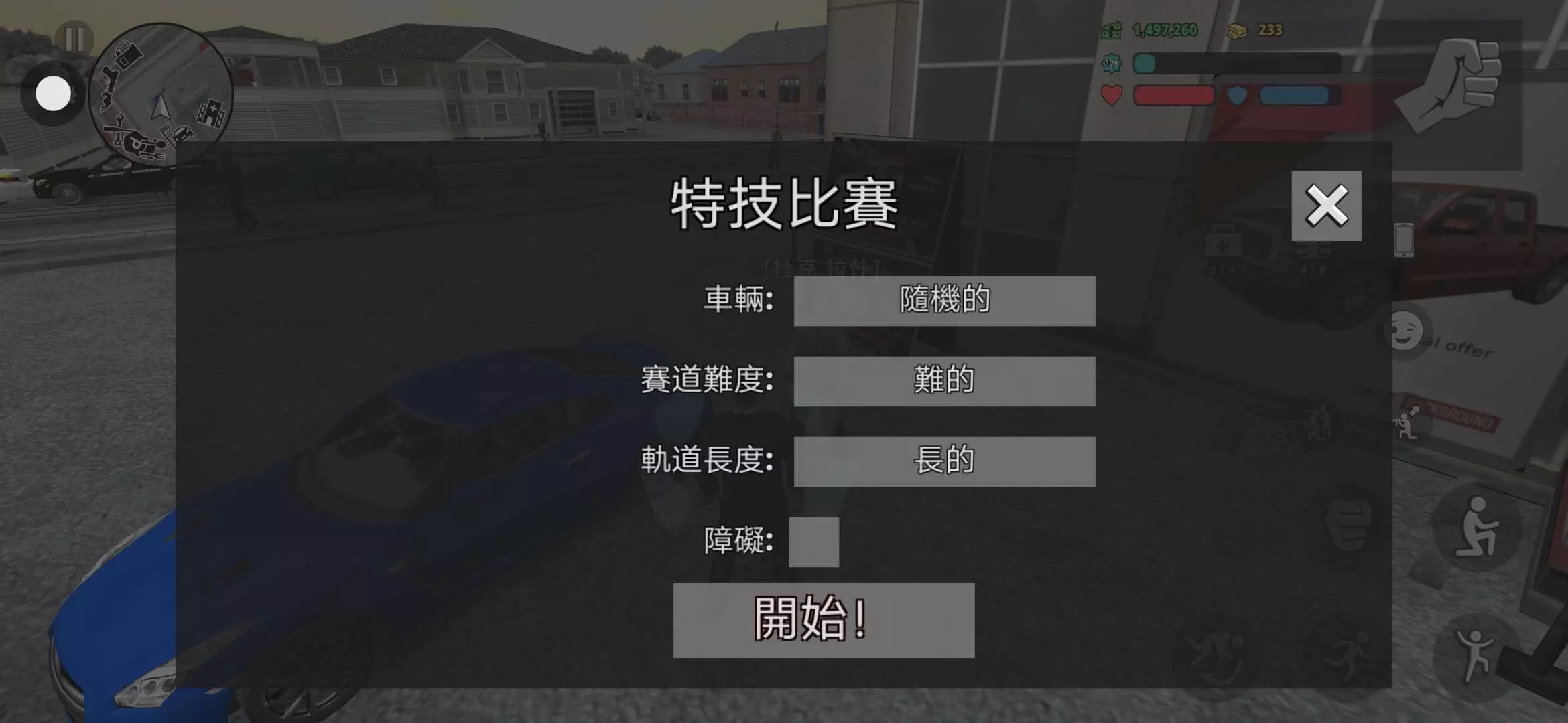 首先,辞去警察的工作,打开游戏中的手机图标,找到黄色的人脸图像,点进去,找到汽车展厅。在跑到那个蓝色战神GTR那边,找到一个叫【杜克·拉什】的人,就可以做特技比赛了,可以根据自己的喜好定制赛道的难度(有可能会刷出彩蛋,关卡非常短的那种,就像最后一幅图!)。