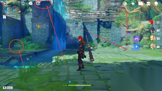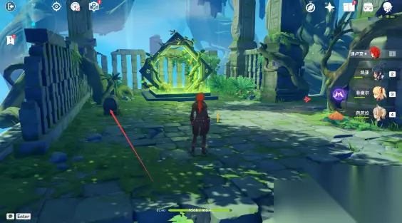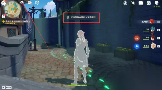 ①使用当前设备对应的开启元素视野按键,或者点击小地图右上侧的这个[眼睛]按钮。 ②跟随绿色的脚印,寻找对应的目标。 【那个绿色的家伙】 9、找到“绿色家伙”