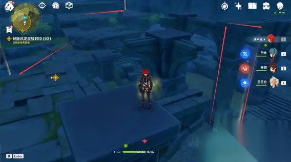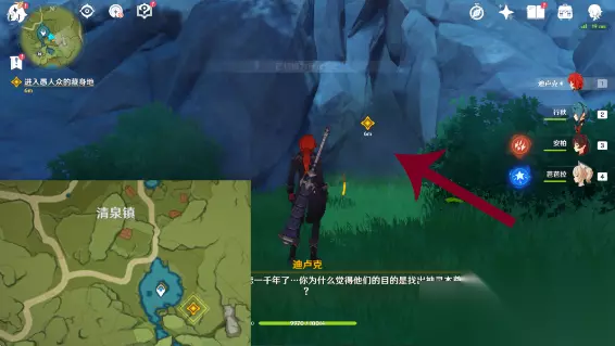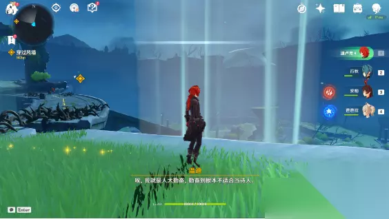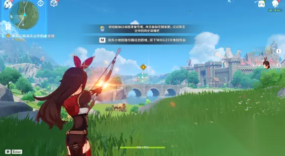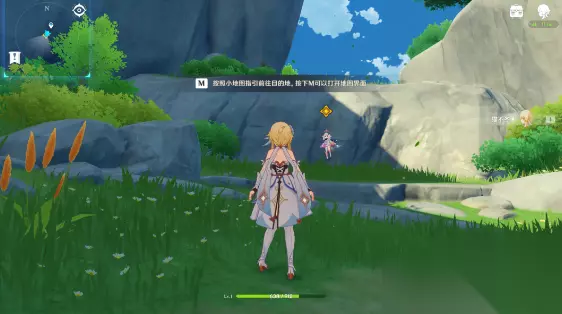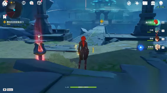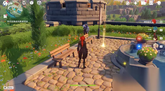 一、捕风的异乡人 【流浪者的足迹】 1、跟随派蒙(观察屏幕左上角,金色标记是派蒙的位置)