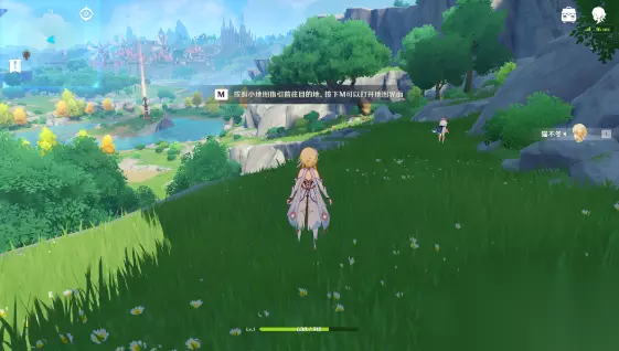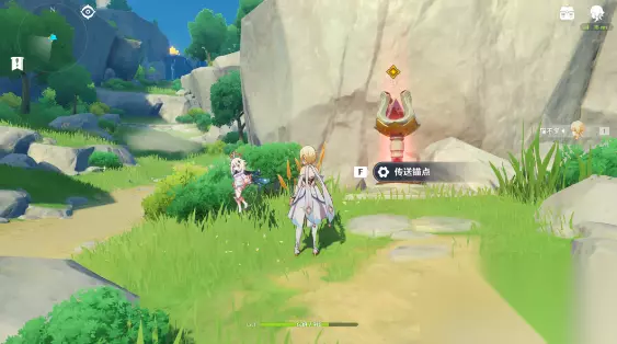 【鸟瞰风物】 5、继续前进(沿着小路一直前进) 6、到派蒙附近(如图附近,靠近派蒙后会触发一段动画,自动对话后后派蒙会立即移动)