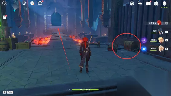 38、在庙宇门口跟安柏见面(打开地图可以传送,从图中标记处左上角那个传送点过来)