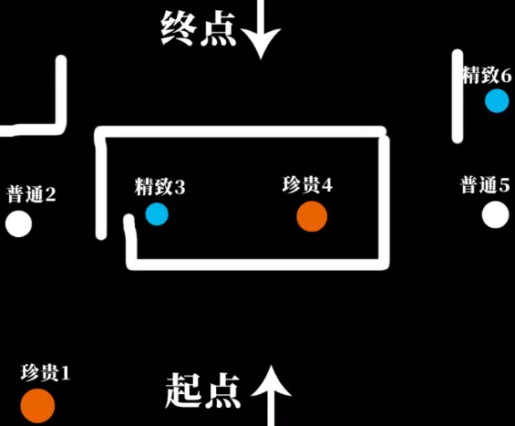 珍贵*1,精致*1,普通*1,在中间的的精致在珍贵旁边,需要用投掷物吸引守卫注意,普通在对面,拿了后在地图右侧继续前进,到下—部分。