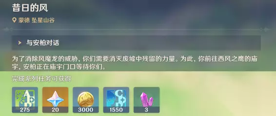 4、与温迪等人对话,完成任务 【障壁】 5、前往风龙巢穴入口 6、击退路上的怪物,来到风龙遗迹 7、到达风龙巢穴入口
