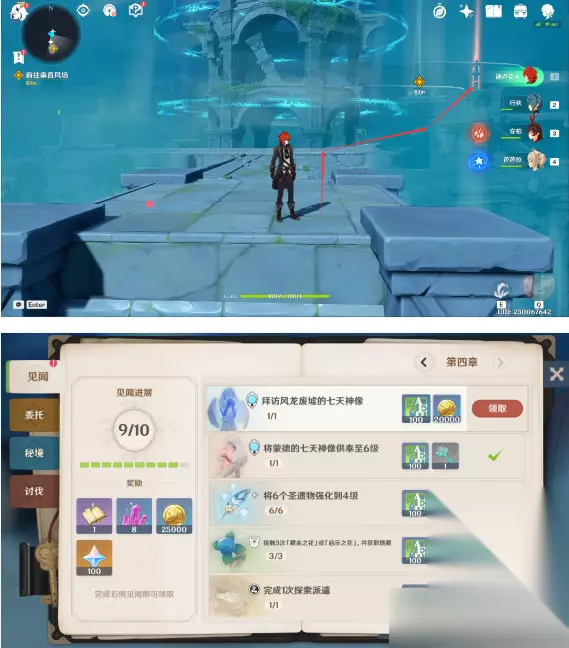 12、穿过风墙 13、前往垂直风场:记得与七天神像交互,可以开启风龙废墟的地图显示方便后续探索,同时完成[冒险手册]的对应任务。