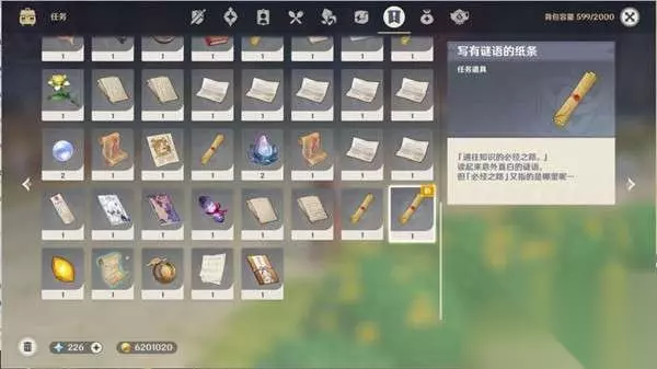 16、在背包中查看纸条,获得通往只是的必经之路的新谜语。