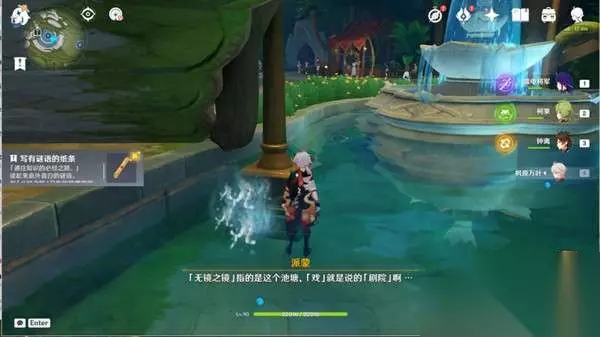 15、获得写有谜语的纸条,无镜之镜就是池塘,戏就是剧院。