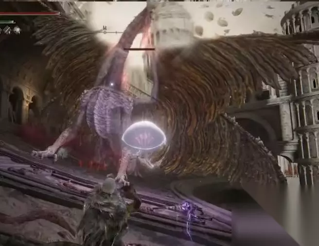 5、从赐福出来往前走到达城墙边,这里会遇到一条龙,击败它。