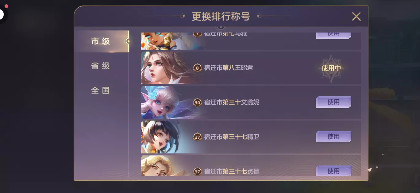 现在是市榜第三王昭君,但是被禁言15天,只能玩小号。。。。