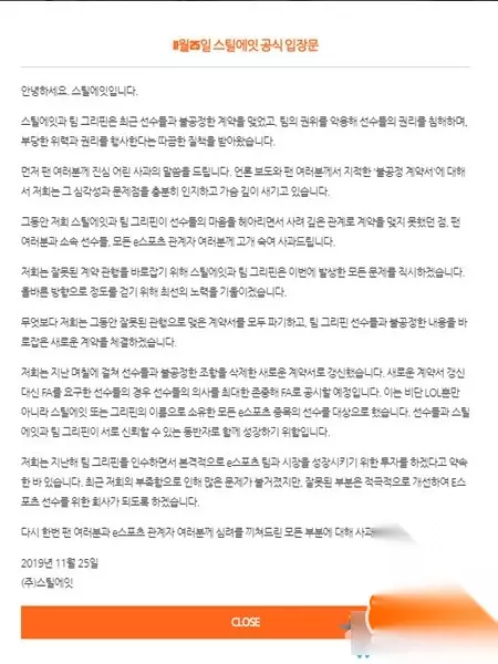 原文翻译: Still8:格里芬选手合约全部作废进行修正,选手可自愿选择自由人身份 大家好,这里是Still8。 Still8与GRF最近与选手签订了不公正合约,恶意使用战队权威侵害选手权利,被指责行使了不正当威力与权利。 首先我们向粉丝致以诚挚的歉意,对于舆论报道和粉丝们提出的“不公正合约”,我们充分意识到问题及其严重性,并铭记在心里。 这期间我们与Griffin战队慎重考虑选手们的内心没能续约,向粉丝们、所属选手们、所有电竞相关人士致歉。 为了纠正错误的合约条例,Still8与GRF这次将直视这次发生的所有问题,尽最大的努力走正确方向。 最重要的是,我们将废除之前所有错误的合约条例,并与选手签订新的合约。 过去几天里我们删除了对选手不公正条约,并拟了一份新的合约,对于要求自由人身份替代签新合约的选手,我们将最大地尊重选手意见,以自由人身份形式公开。这项决定不光是面对LOL选手,同样也包括拥有Still8或是格里芬名义的职业选手。这一决定是为了让选手们与Still8、格里芬能够互相信任成为携手并进的同伴。 我们在去年收购格里芬时曾说过会促进市场并正式投资电竞队伍。虽然最近因为我们的不足导致出现了许多问题,但我们会尽全力完善不足之处,成为为了职业选手的公司。 更多内容点击 百度搜索:233乐园网LOL活动,你可以随时关注到所有LOL的活动。
