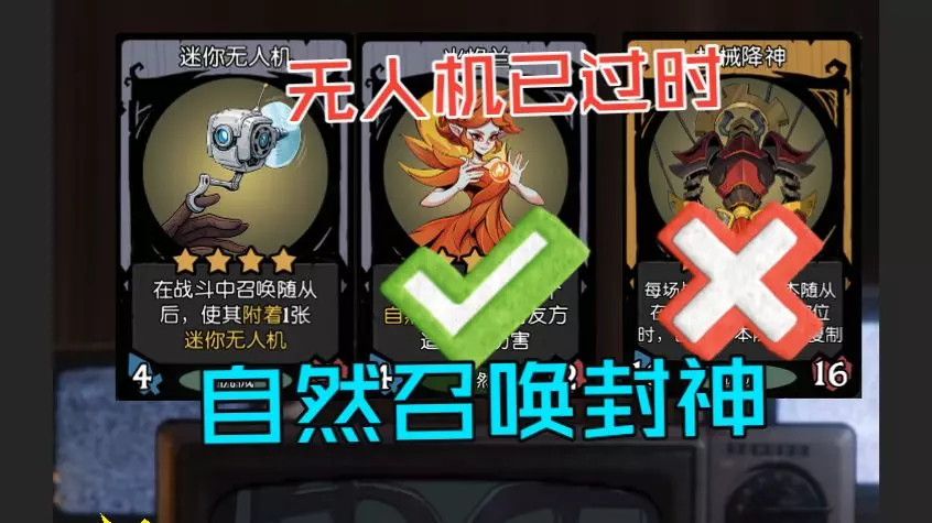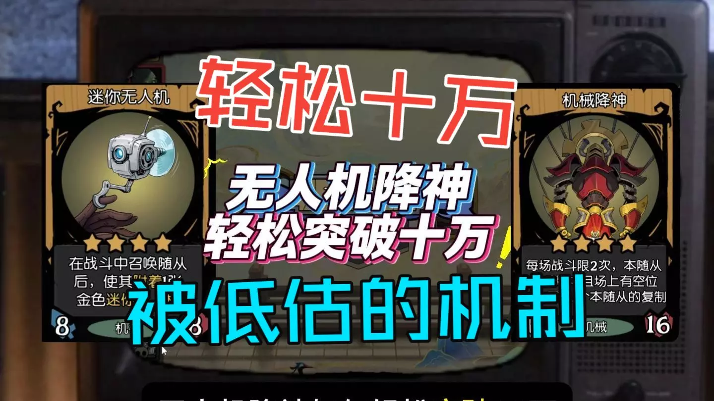 这是娱乐向的《月圆之夜》游戏内容展示,展示了迷你无人机卡牌的强力效果,原本不起眼的单位借助无人机的叠加效果,属性暴涨,实现了从“卡拉米”到“大佬”的蜕变。