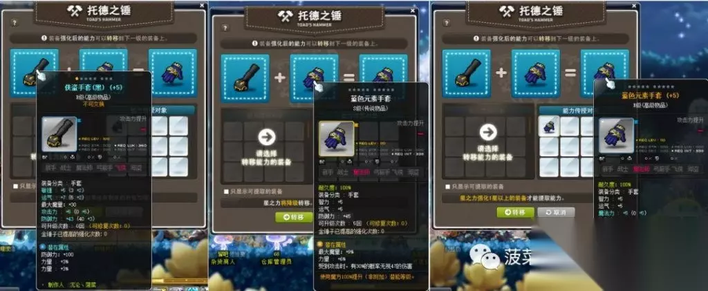 可以通过小技巧来实现洗潜能,大概过程为B->A->S,第一次这个步骤可以直接通过怪异魔方实现。如果直到S属性,没有洗出理想的属性,例如12%或者以上的主属性(力量、敏捷、运气、智力)的话。我们可以制作B级托德,将该物品潜能覆盖,循环上面的过程。 具体实现 前置准备,需要做一部分用于托德的底子(底子装备等级需要低于被托德装备的目标10级或以内):